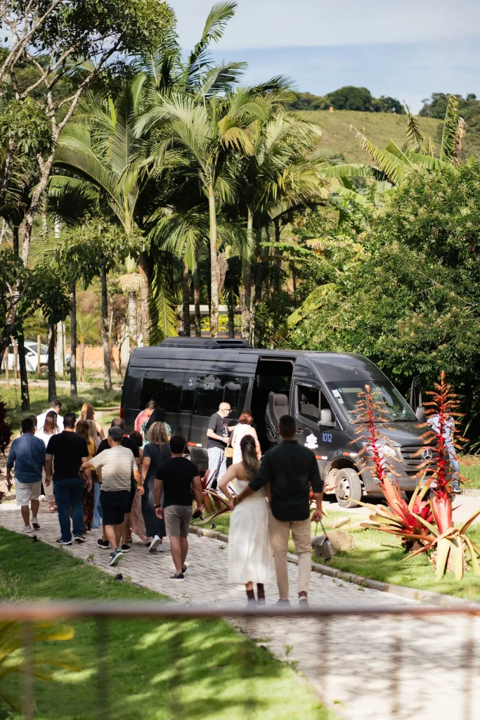 A experiência começa no deslumbrante Jardim Trindade. Por lá, você embarca em uma van moderna e confortável rumo ao pôr do sol mais lindo da Serra de São José. A primeira van sai às 16:30 e a última retorna às 20:30 (horário aproximado).